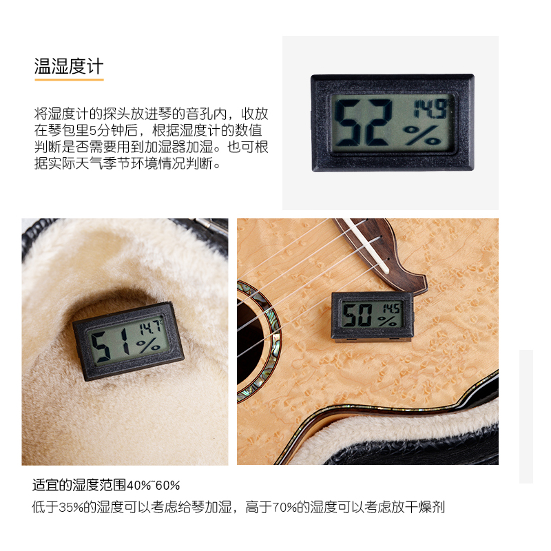 Ukulele humidifier electronic hygrometer desiccant humidifier debugging temperature and humidity meter hygrometer sound-controlled