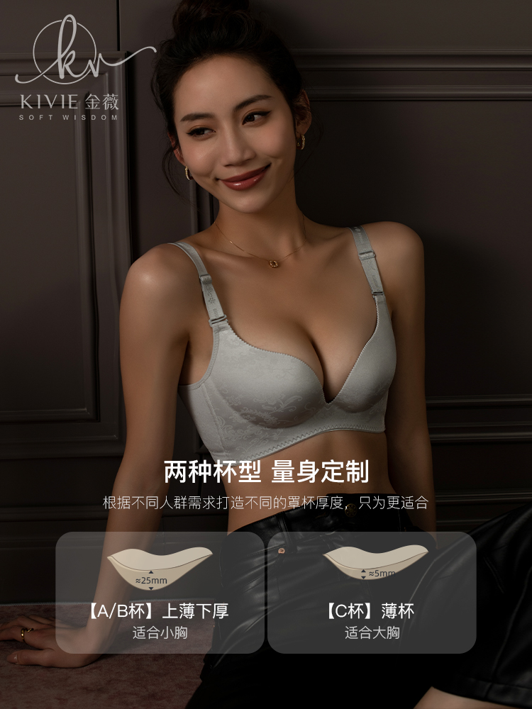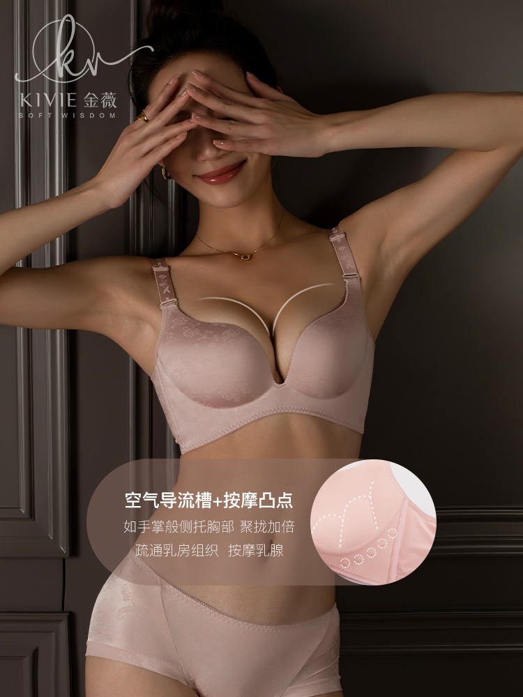 kivie Jinwei burning flowers underwear women's small chest gathered bra adjustable breasts bra sexy no steel ring