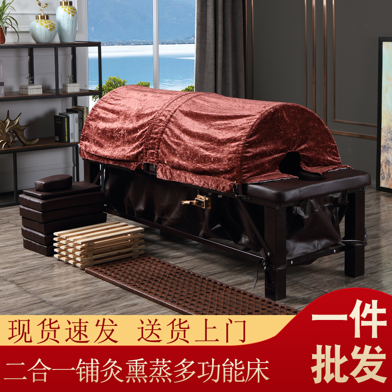 Fumigation bed rattan wood two-in-one whole body fumigation therapy home beauty massage therapy bed Chinese medicine shop moxibustion bed