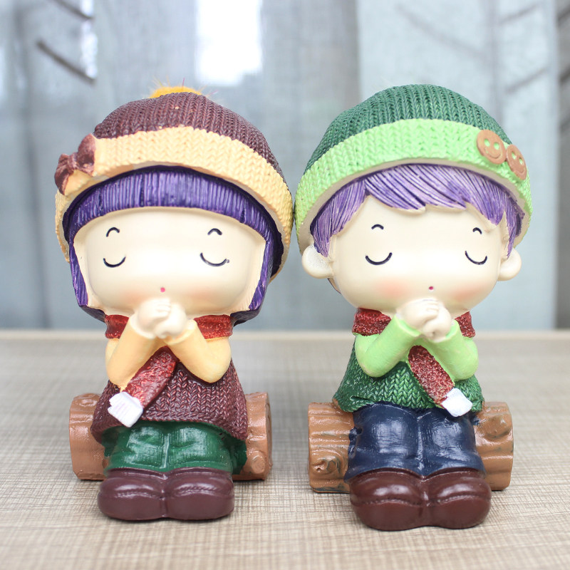 Creative Resin Xu Willing Doll Swing Piece Cute Cartoon Boy Girl Paparazzi Home Car Decoration Couple Gift-Taobao