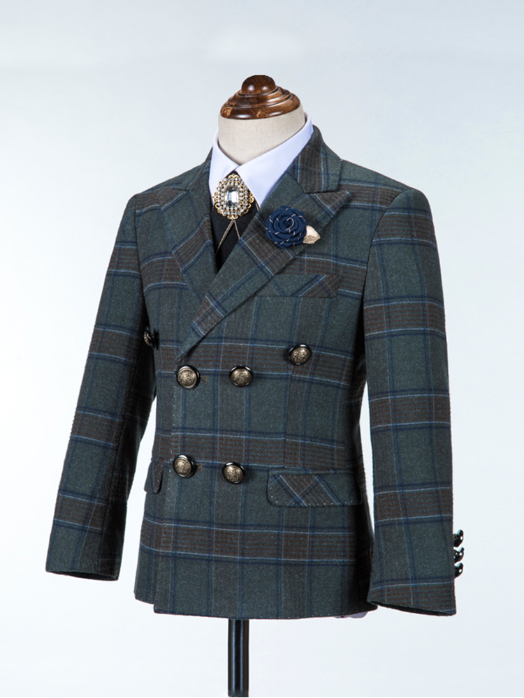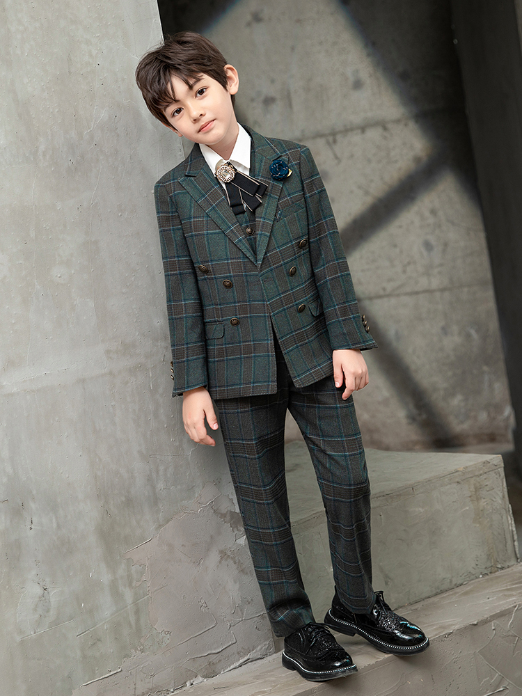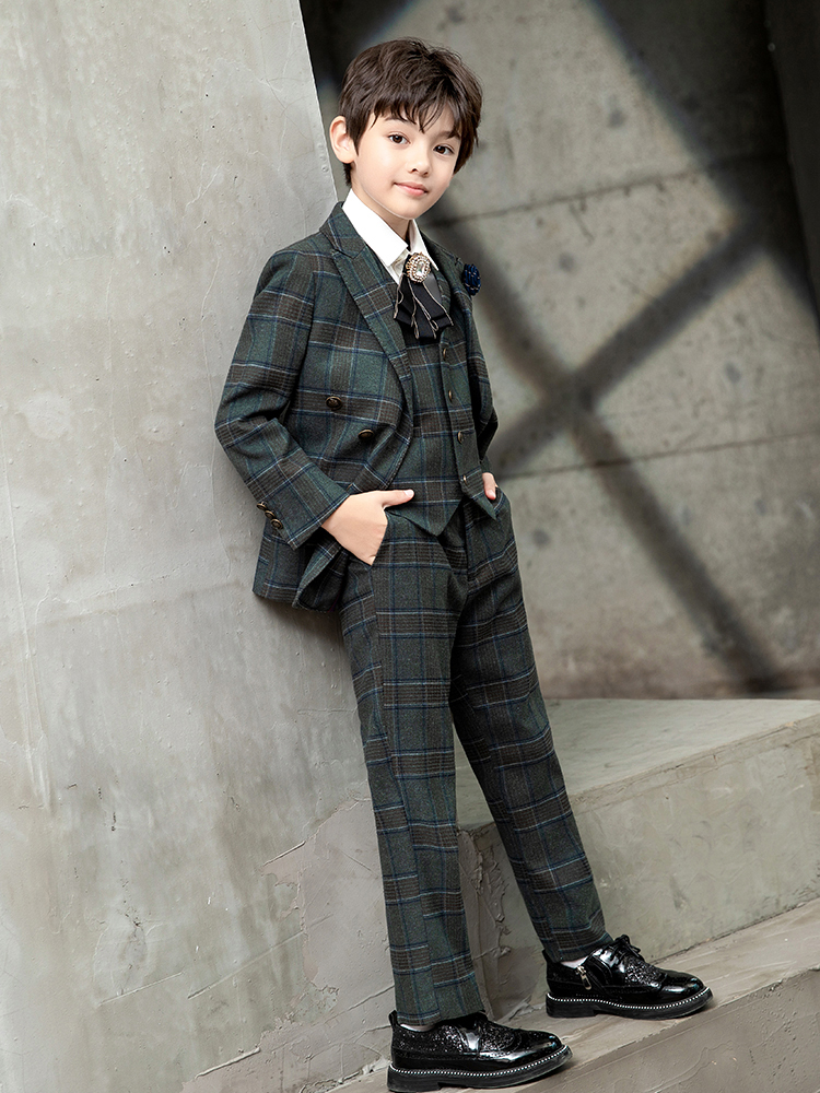 Three-piece set (suit, pants, vest) Five-piece set (suit, pants, vest, shirt, bow tie) Six-piece set (suit, pants, vest, shirt, bow tie, brooch) Five-piece set