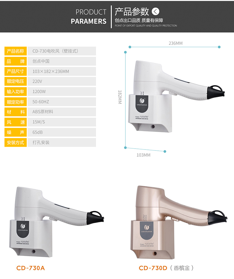 Chuangdian Hotel home wall-mounted hair dryer free perforation constant temperature hair care cold and hot hair dryer bathroom skin dryer