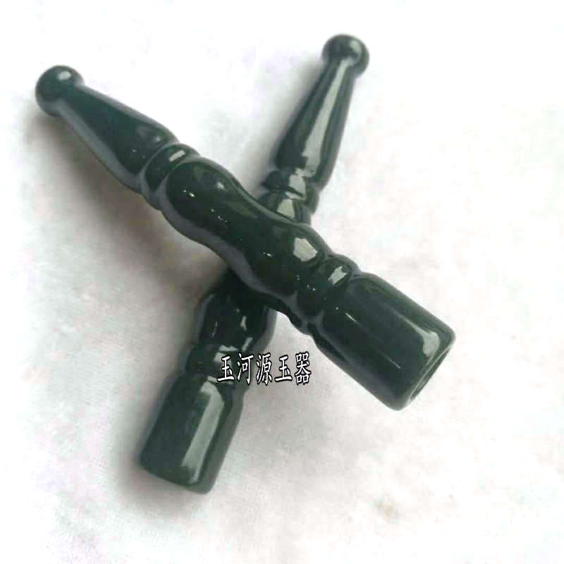 Natural and field jade cigarette holder male and female, tobacco-style old cigarette holder natural Qingyu cigarette holder filter tip with certificate