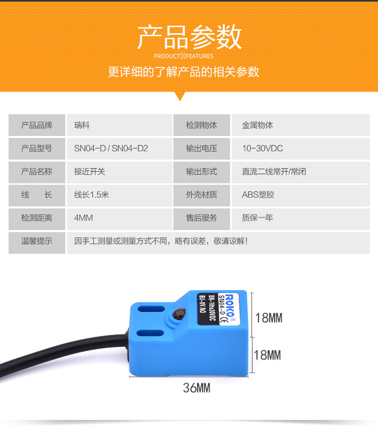 Square proximity switch SN04-D DC 2-wire no-open Metal induction limit sensing 24VDC