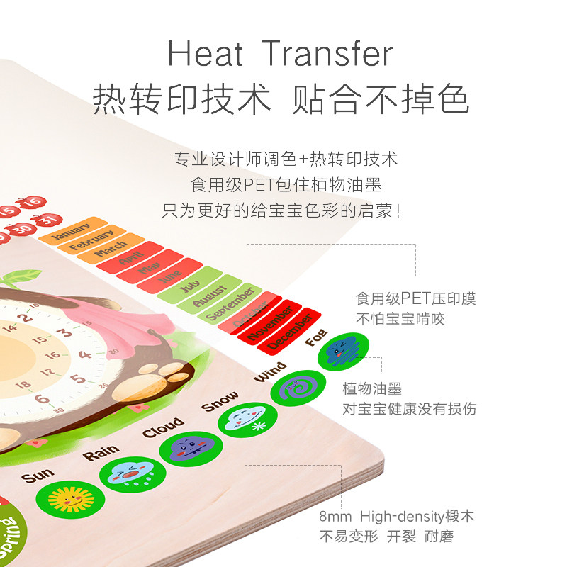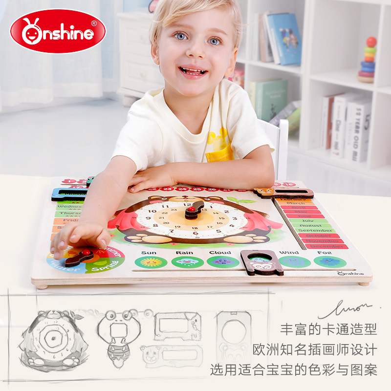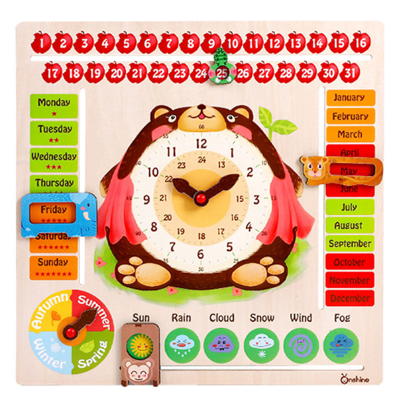 Children Multifunction Clock Calendar Cognition Board Early Teach Cartoon Wooden Puzzle 1-3-6 Year Old Baby Puzzle Toy