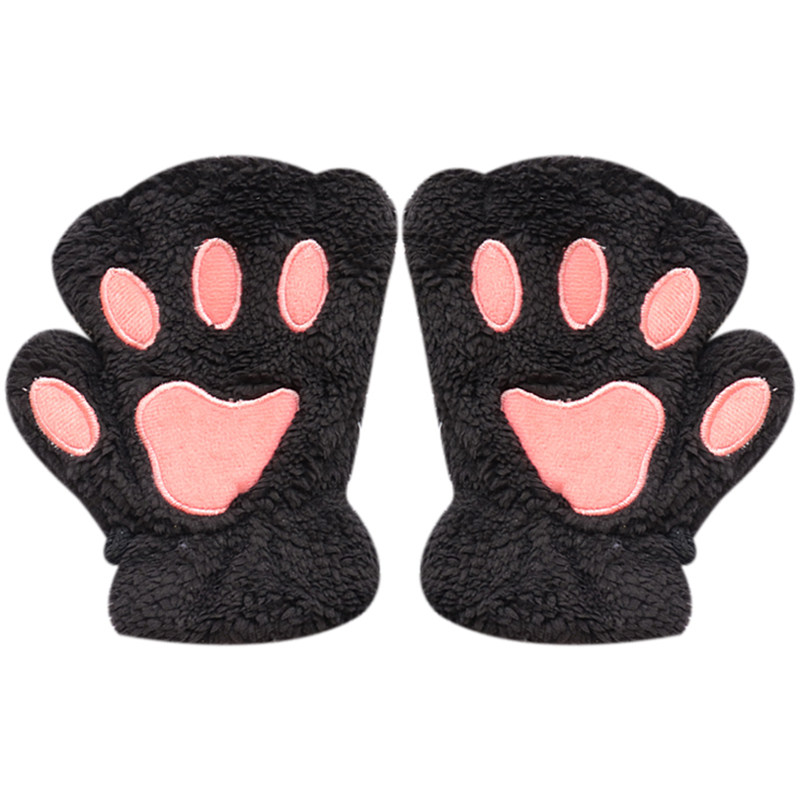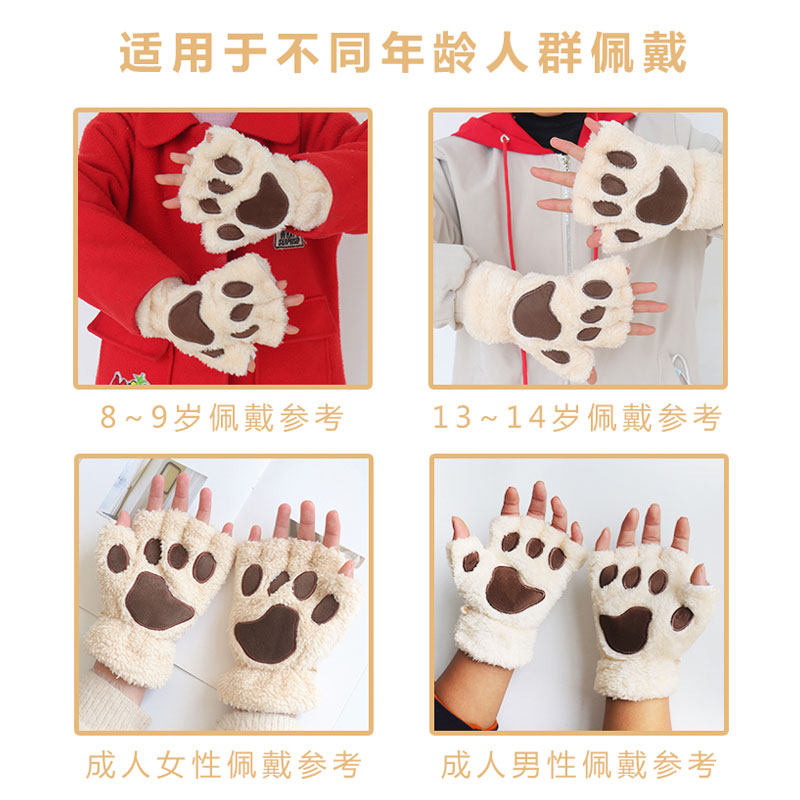 Cat Paw Gloves Winter Female Korean Version Half Finger Male Thickening Plush Cute Student Fashion Keyboard Bear Palm hanging neck bracelet
