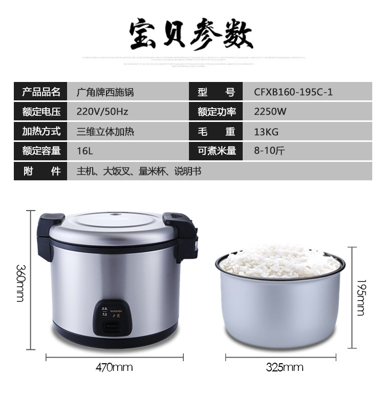 Pine Yi wide angle 16 liters West cure large capacity rice cooker commercial cafeteria sand county snack rice cooker stainless steel rice cooker