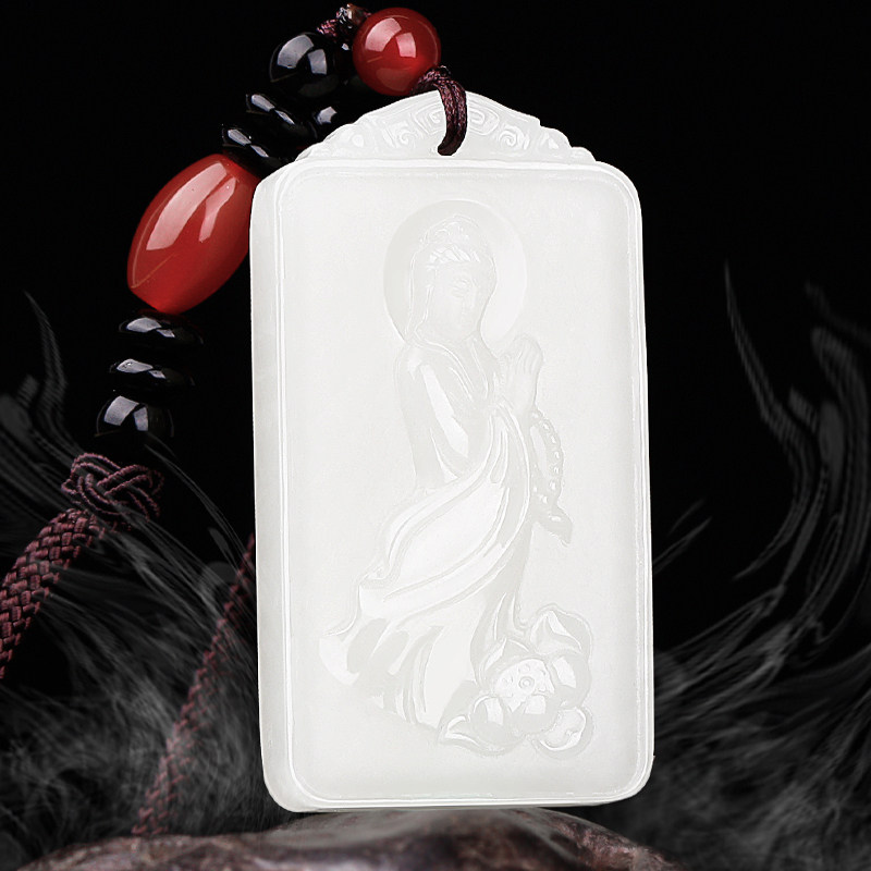 Pu Cai hetian jade guanyin jade brand white jade men lotus jade pendant jade necklace and tian jade gift certificate