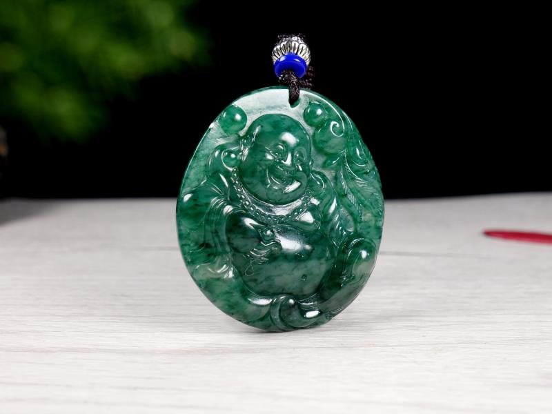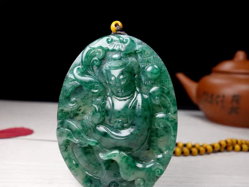 Nanyang specialty boutique Dushan jade old material full of green sky blue Guanyin Buddha couple dress live room has the same neck ornament