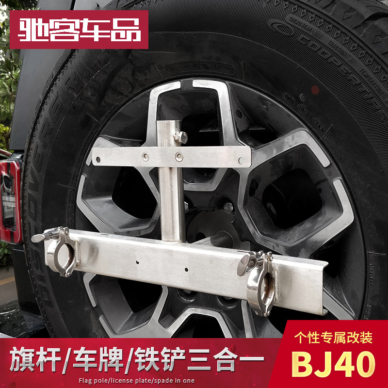 Beijing BJ40C three-in-one spare tire license plate frame chess pole sapper shovel Beiqi bj40plus modification accessories