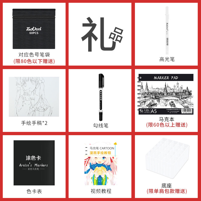 Touch Cool Oily Double Head Mack Pen Hand-painted Design Suit Students Color Pen Mcpen Suit Cartoon Students Painting Color Pen Brush 60 80168 Color Full