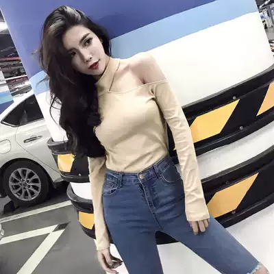Ge Gejia spring net celebrity live clothes women's anchor clothing sexy off-the-shoulder nightclub long-sleeved T-shirt top tide