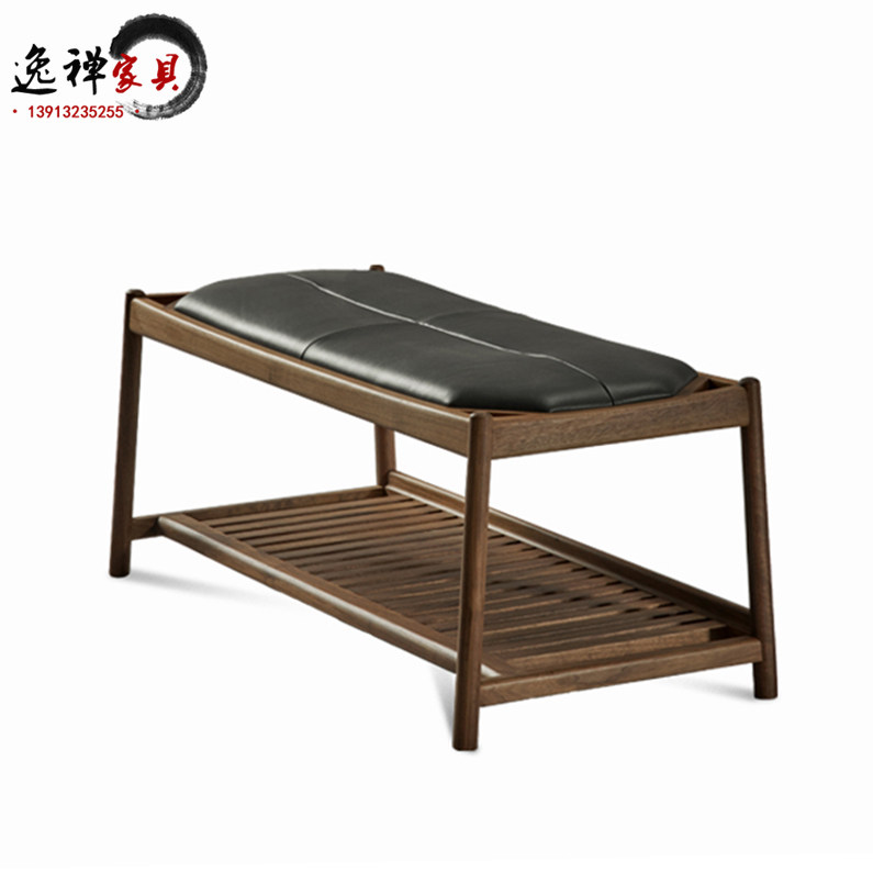 New Chinese style porch cabinet shoe changing stool solid wood porch cabinet shoe cabinet model room club Zen walnut furniture customization