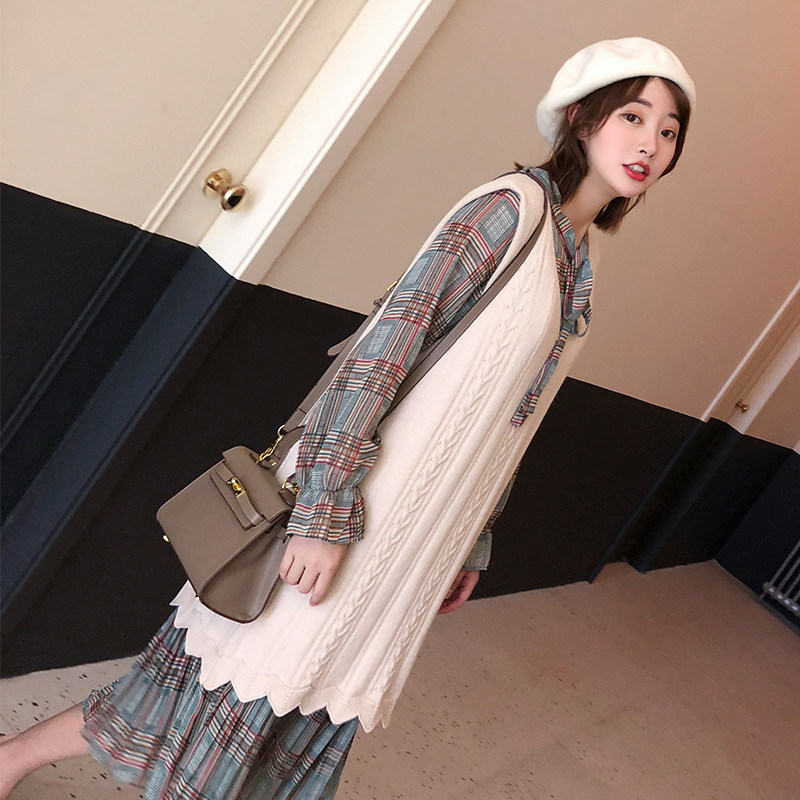 Pregnant women's spring suits, skirts, women's spring and autumn sweaters, vests, two-piece suits, mid-length baby bags, bottoming chiffon dresses