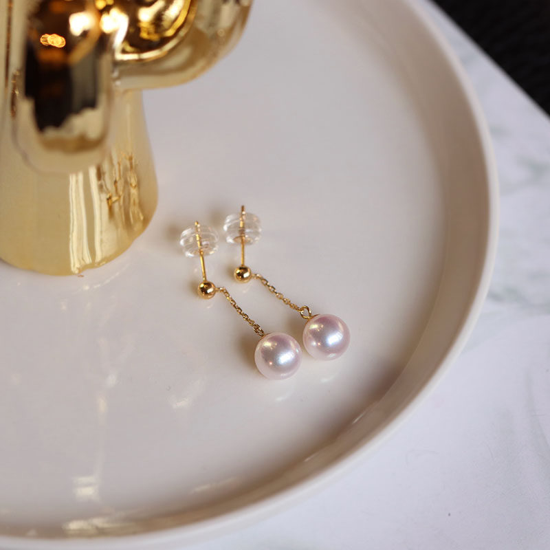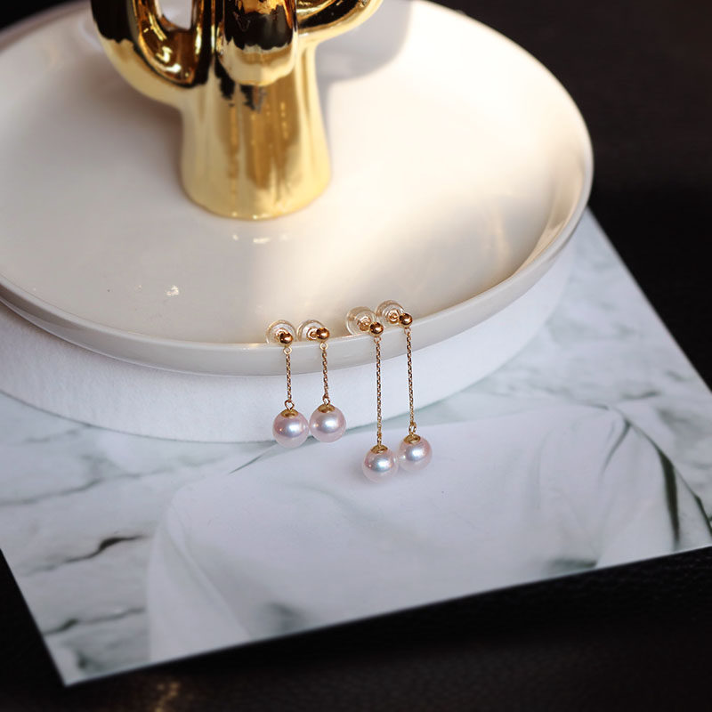 Japan Auris Akoya Natural Seawater Pearl 18K Gold Long Earrings Wind in Blown Song Hui Jo Girl Golden Bean Ear Necklace