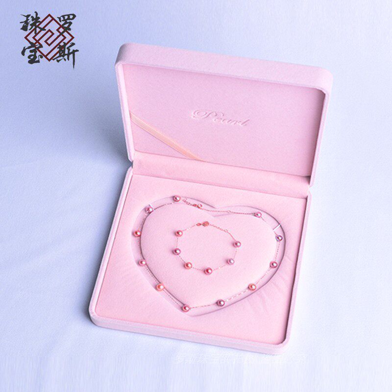 "Ross Jewelry" exquisite first decorated box romantic maiden pink flocking cloth necklace handmade ornament gift box female