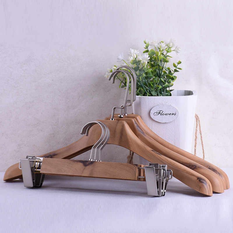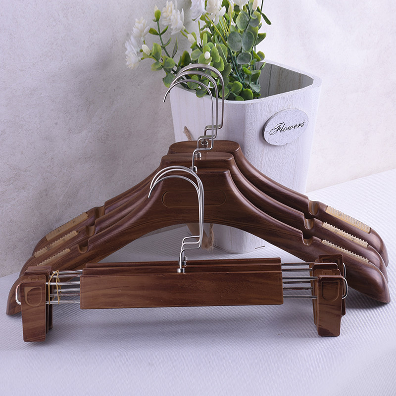 Clothing Shop Imitation Solid Wood Textured Plastic Hanger Pants Rack Custom LOGO male and female non-slip wide shoulder suit big coat hanging clothes brace