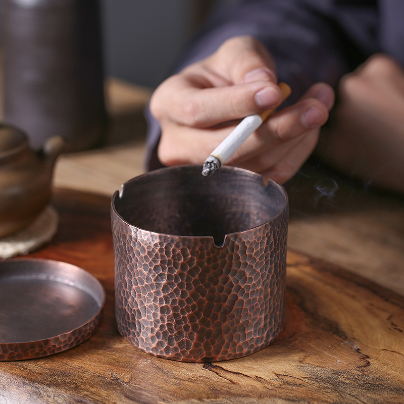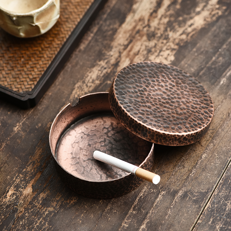 Ichiki hammer pattern pure copper Japanese ashtray with lid Creative personality Home living room multi-function smoke cylinder modern tea room