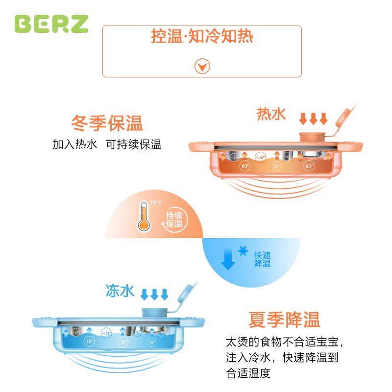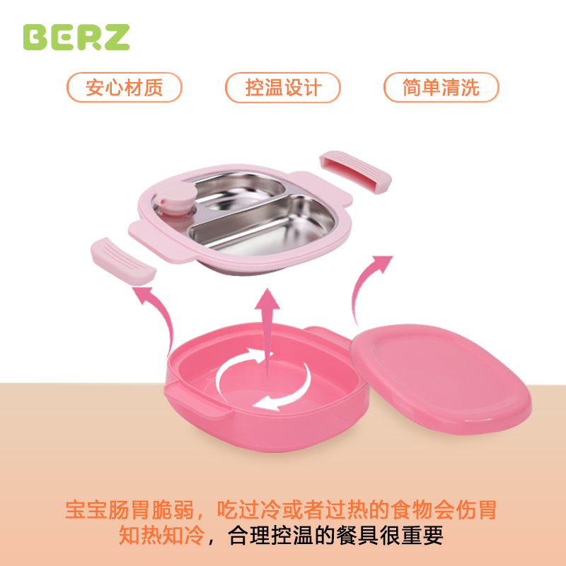 British BERZ Bayes baby children water injection heat insulation grid dinner plate baby lunch box removable washing suction cup supplementary Bowl