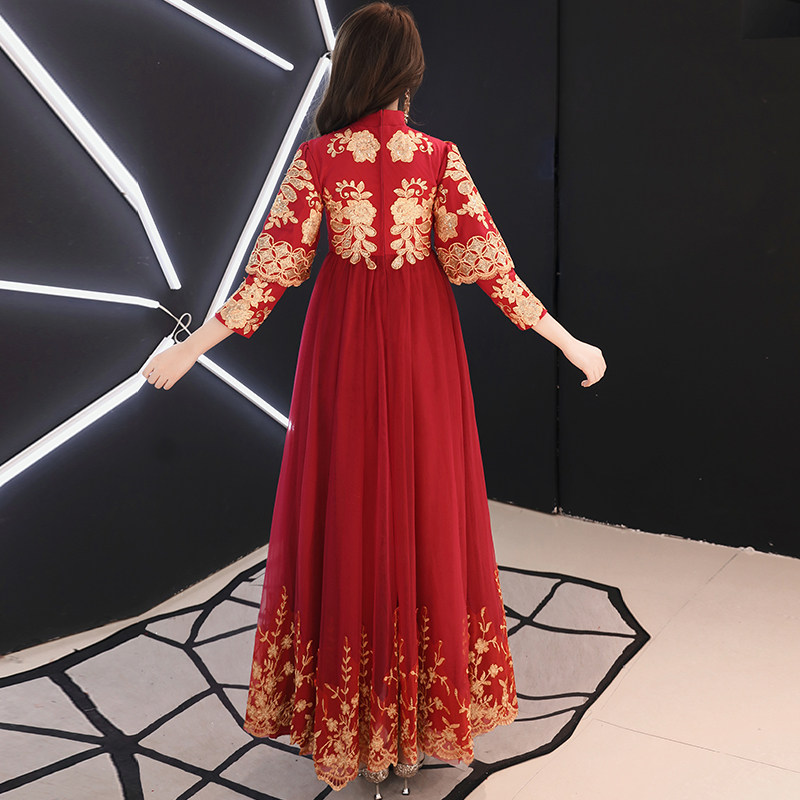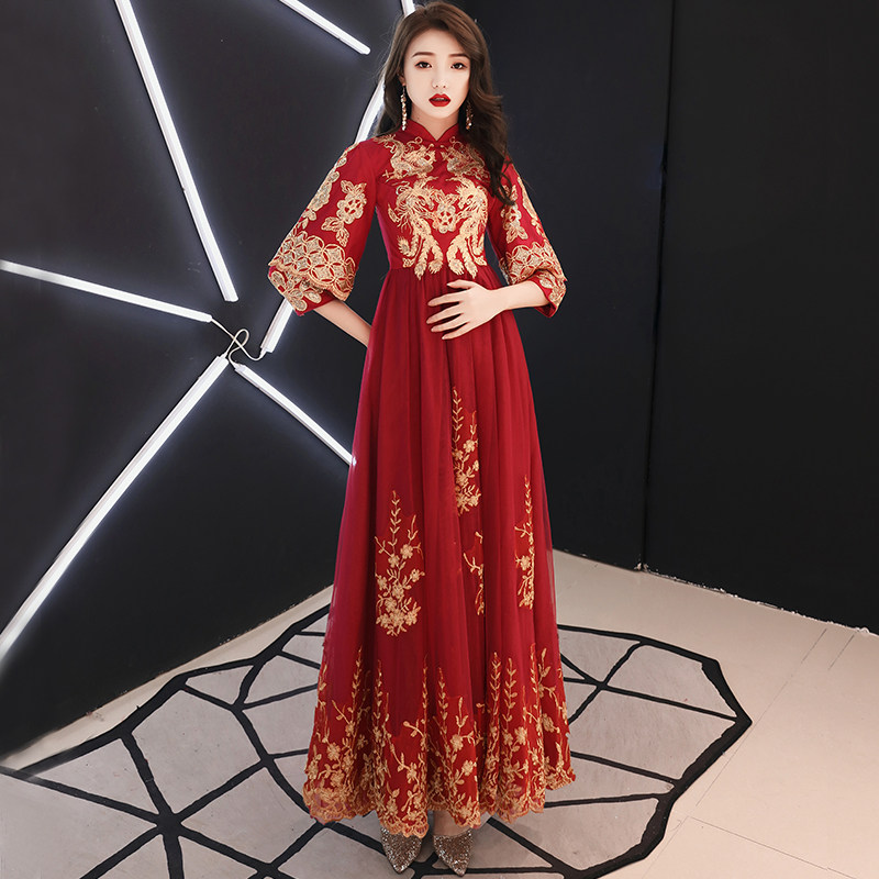 Wine red gold embroidery long version (padded version) Wine red gold embroidery long version (thin version)