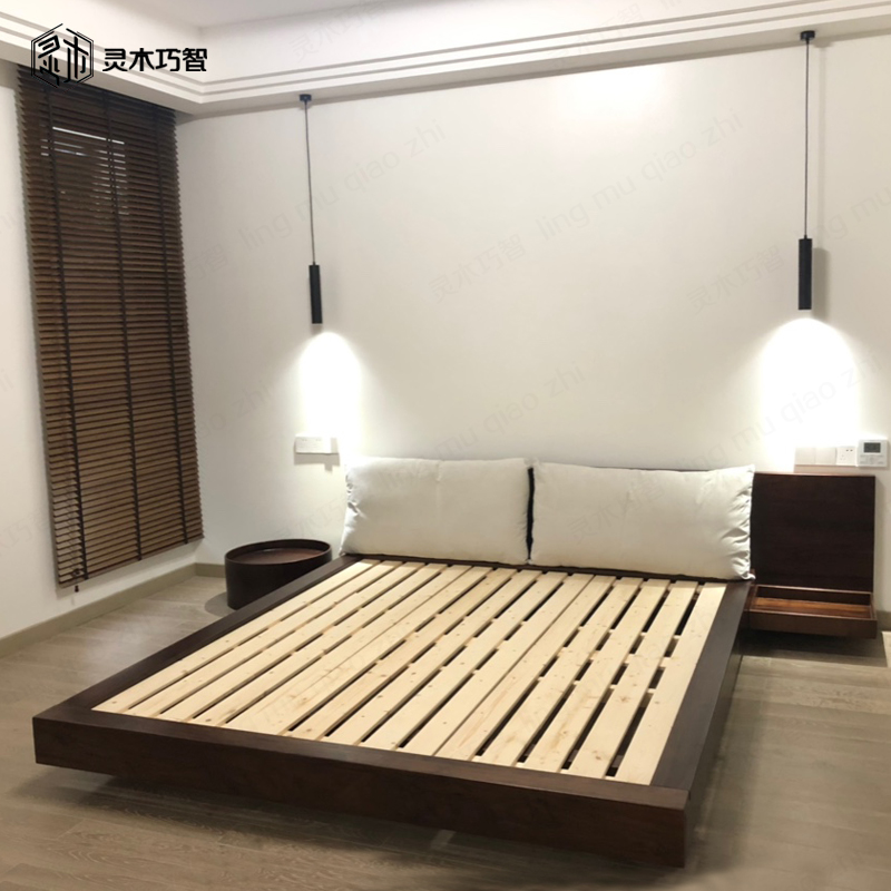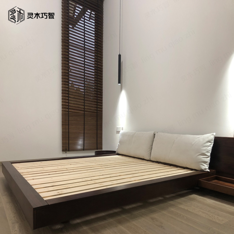 Nordic Japanese-style tatami low bed custom-made North American white oak low bed black walnut big bed solid wood furniture factory