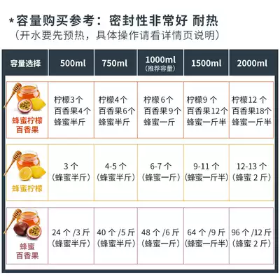 Transparent 500 ml (lemon honey bottle) transparent 750 ml (honey lemon passion fruit recommended) transparent 1000 mL (honey passion fruit recommended) transparent 1500 ml