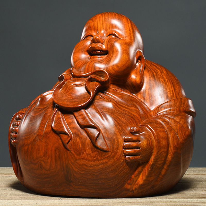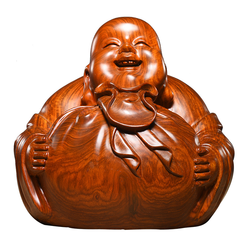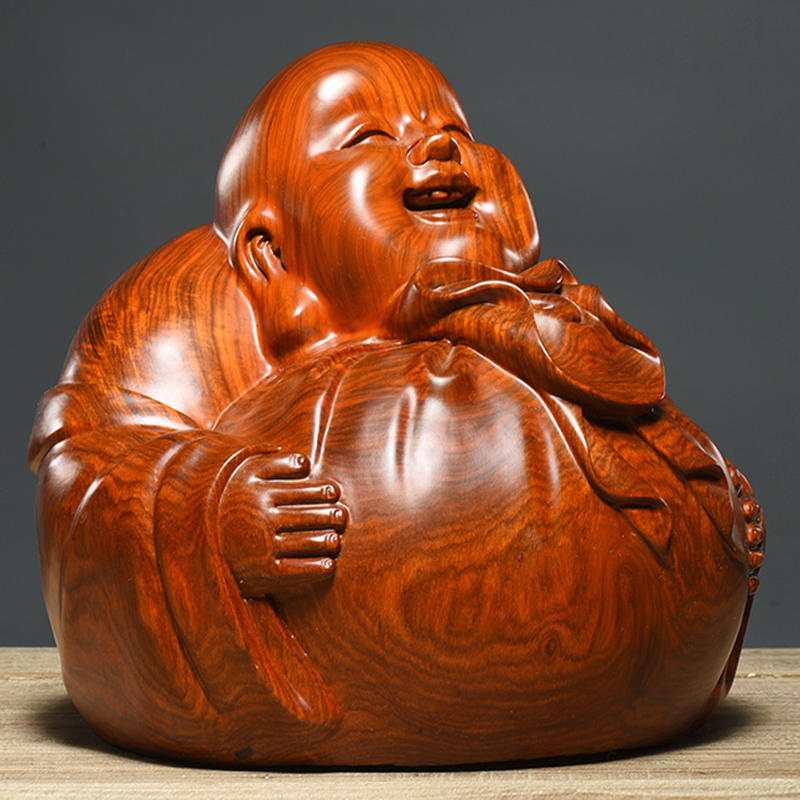 Yellow flower pear wood sculpted Millver Pendulum Pieces Solid Wood Engraving Sitting Laughing Cloth Bag Buddha Home Xuanguan Decoration Red Wood Handicraft-Taobao