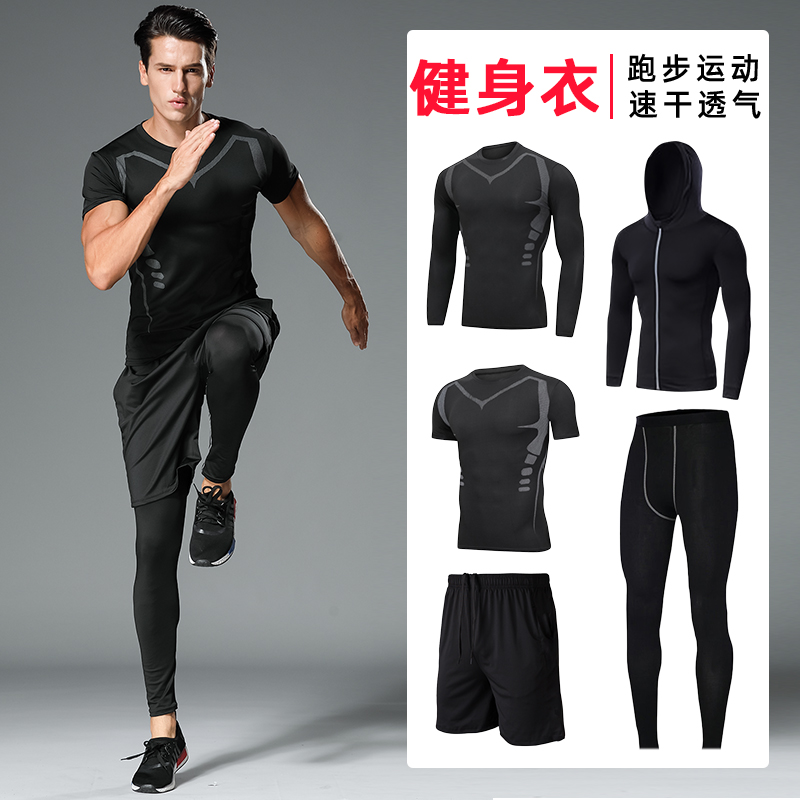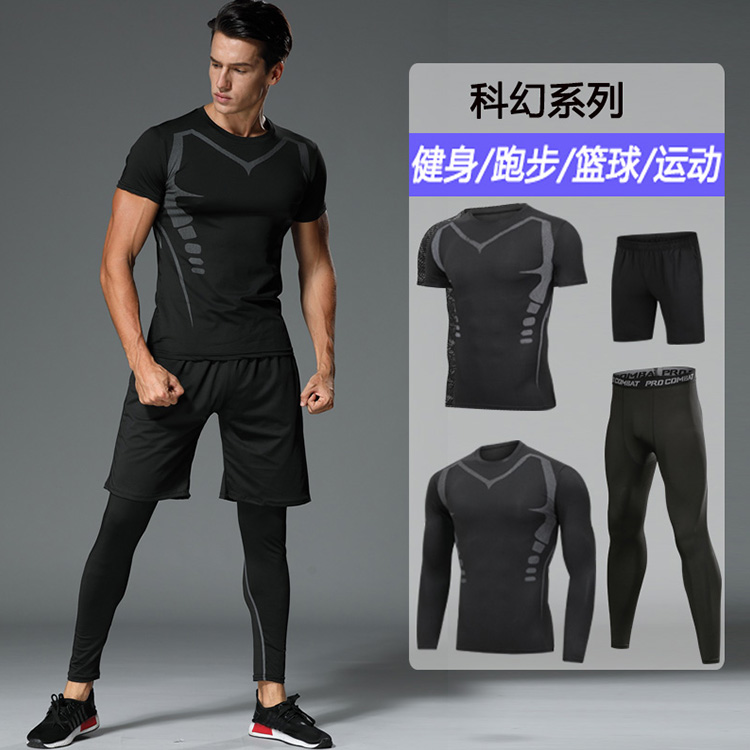 Spring and summer running suit exercise fitness sportswear men's high elastic quick-drying tight basketball equipment sports student training suit