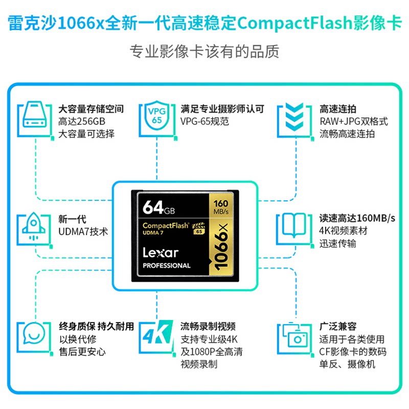 Lexar CF card 64G high-speed Canon single-eye camera large card memory card 5D 1DX 160M camera card