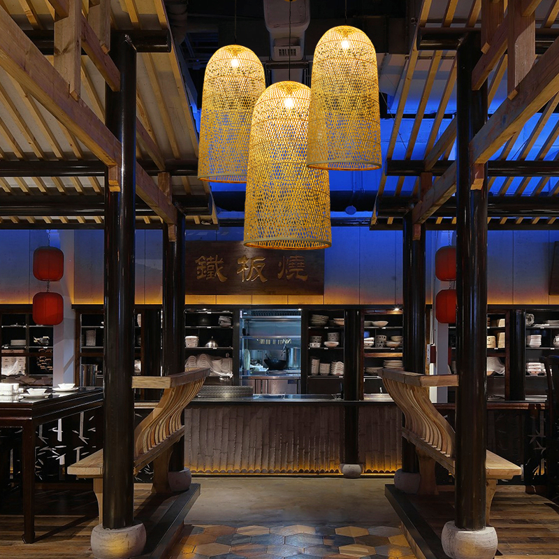 Zen bamboo chandelier bamboo lamp new Chinese lantern hotel tea stairs hotel Japanese rattan woven lampshade lamp