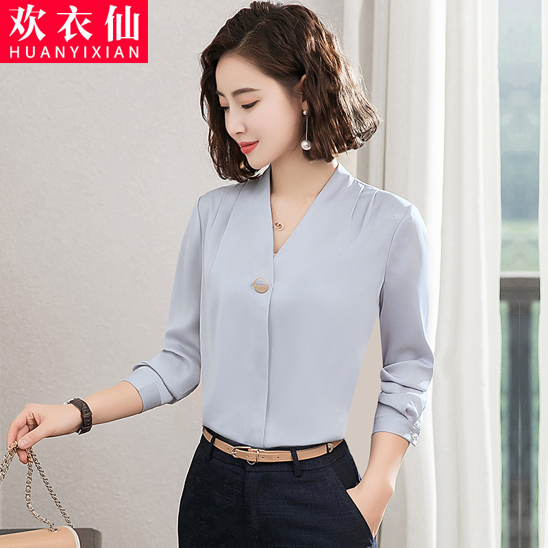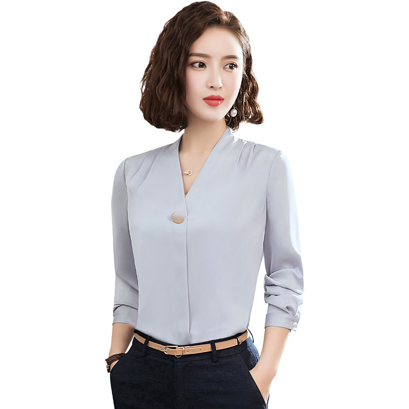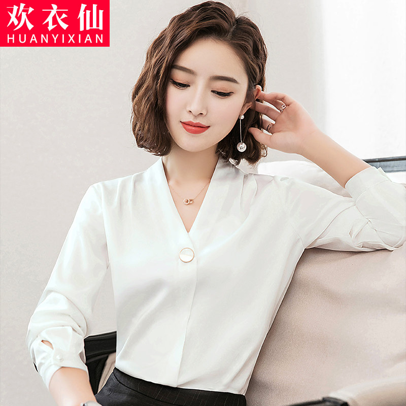 Shirt Woman Korean version Career V Collar Snow-spinning Cardiovert Suit Inside Suit Undershirt Workwear White Shirt
