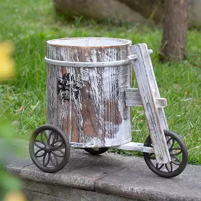 Cart gardening flowerpot vintage flowerpot balcony fleshy pot home wooden round large rose plant pot