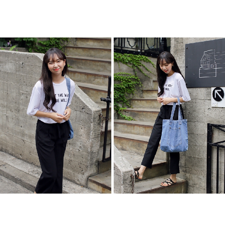 ins new one-shoulder denim canvas men's and women's bag big shopping bag mother bag canvas bag student bag lunch bag