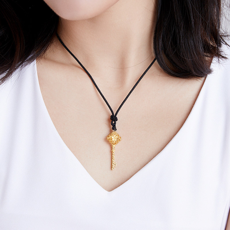 Six Guifu Jewelry Plum Blossom Key Ancient Method Gold Necklace Foot Gold Pendant Necklace Lock Bones Chain Male And Female