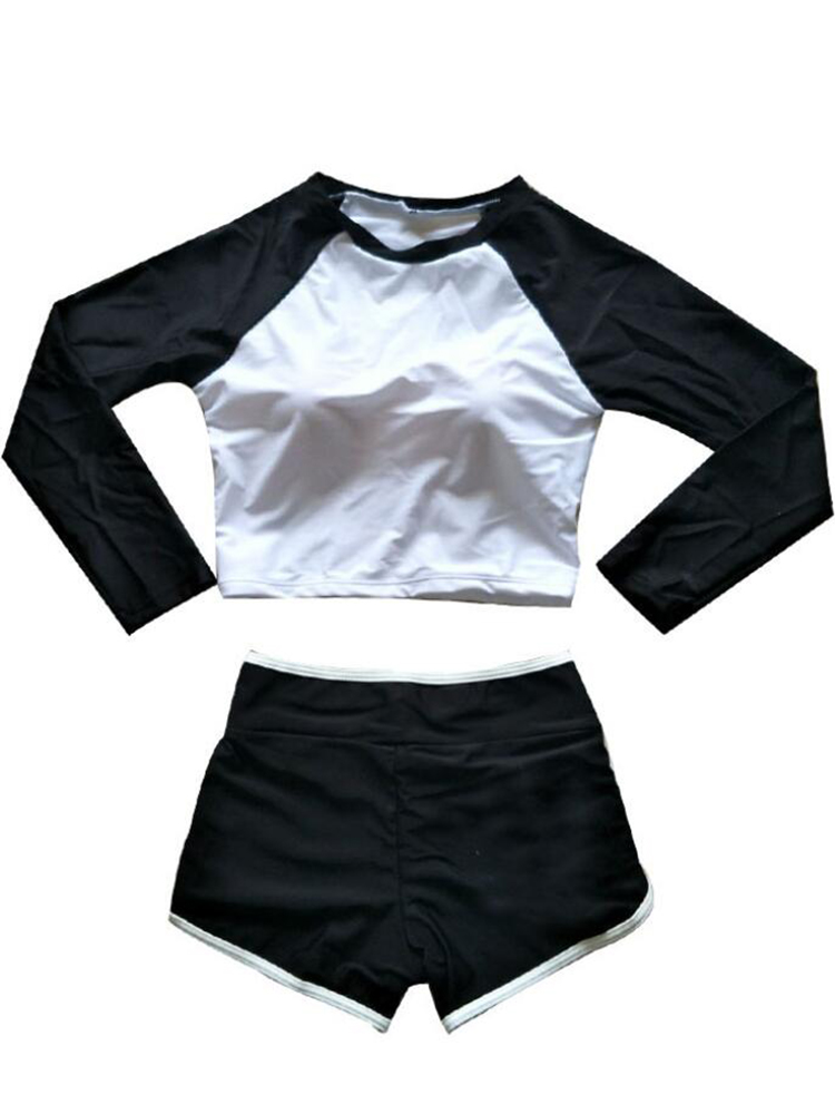South Korea conservative sunscreen long sleeves high-waisted swimsuit women's summer two-piece boxer briefs show thin belly covering sports hot spring swimsuit