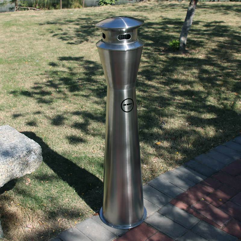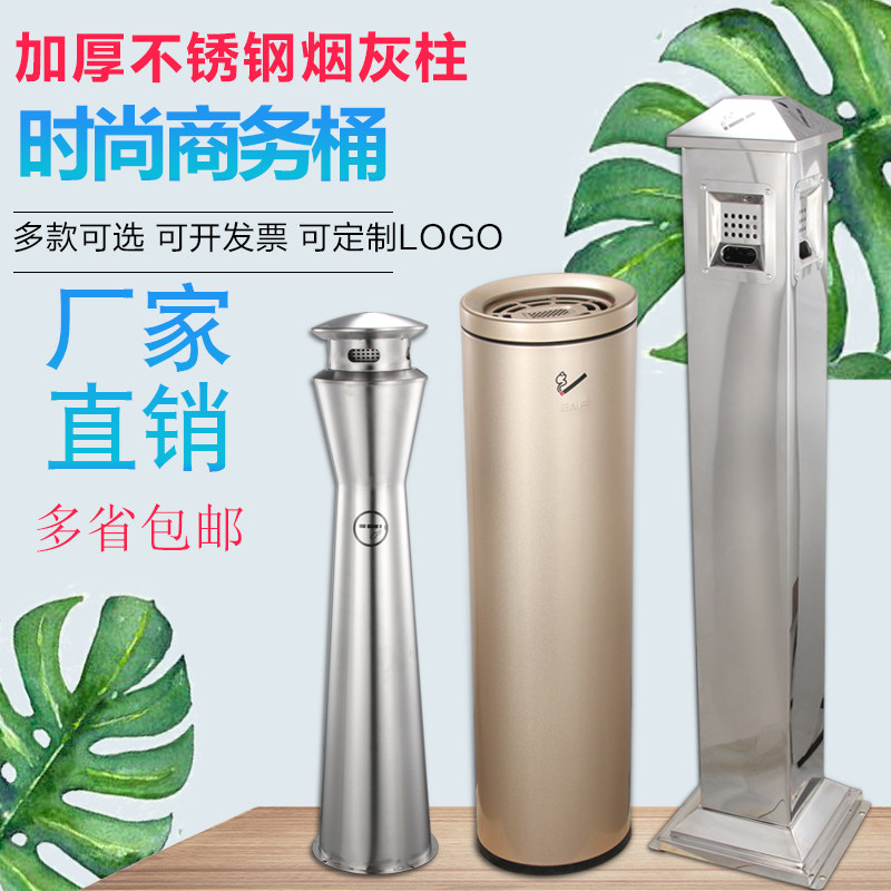 Hotel lobby vertical stainless steel cigarette butt column ash smoking area with ashtray to extinguish the cigarette butt tube outdoor garbage cup