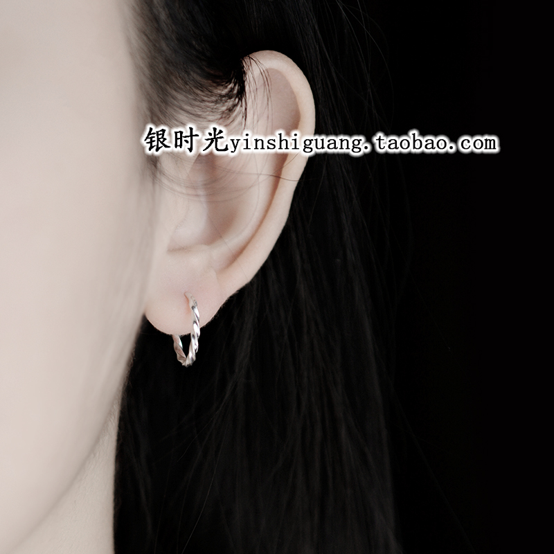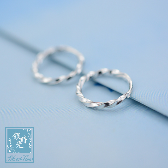 Silver Time S925 Sterling Silver Earrings Mini Hollow Twist Small Earring Personality Joker Earrings Female