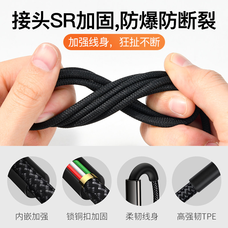 USB data cable three-in-one charging cable one-to-three mobile phone tablet Apple x fast charging type-c Android multi-head GM car suitable for Huawei p20 Samsung note9 millet 8