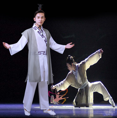Chinese Wind Men Dance Suit Classical Dance Paper Fan Book Sheng Confucius Costume National Dance Tai Chi Dance Sword Performance Suit