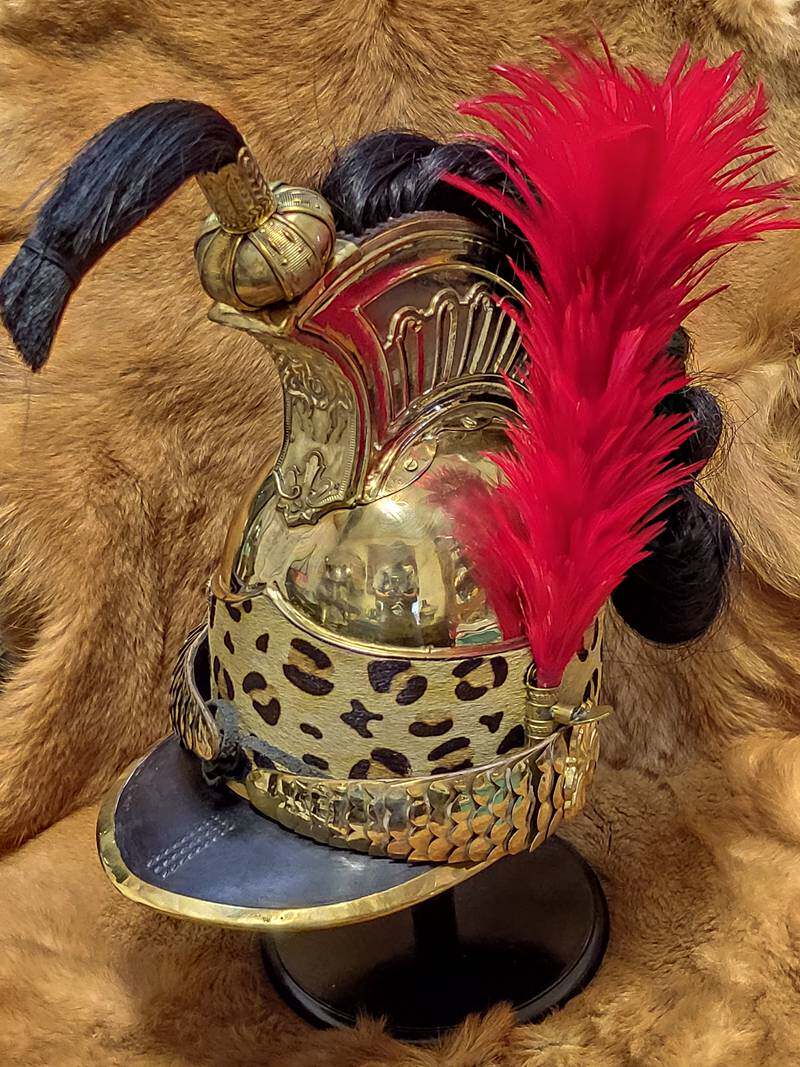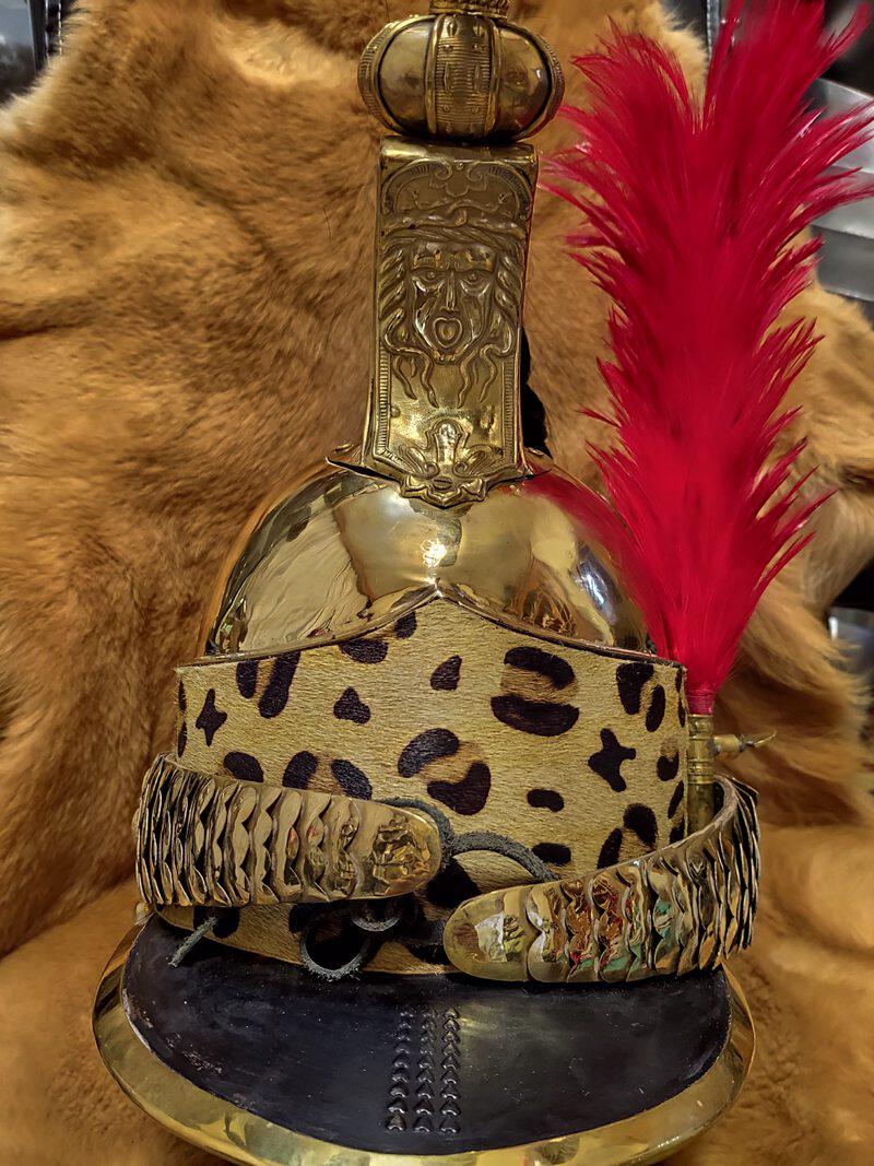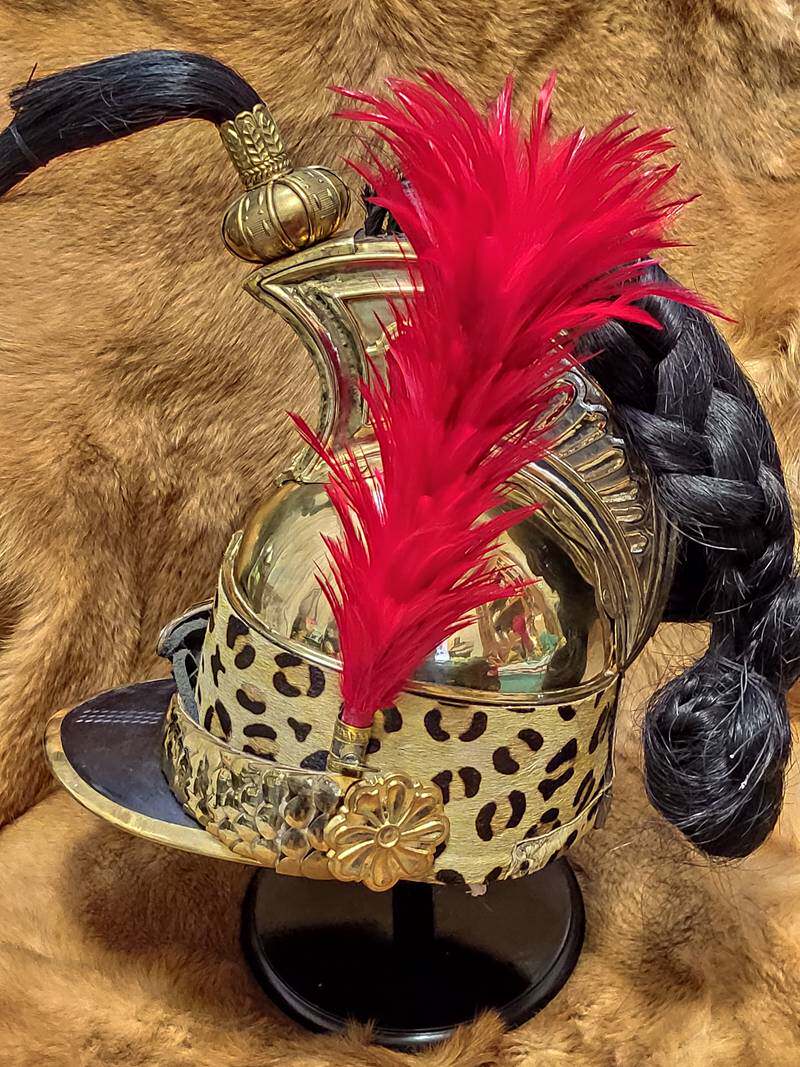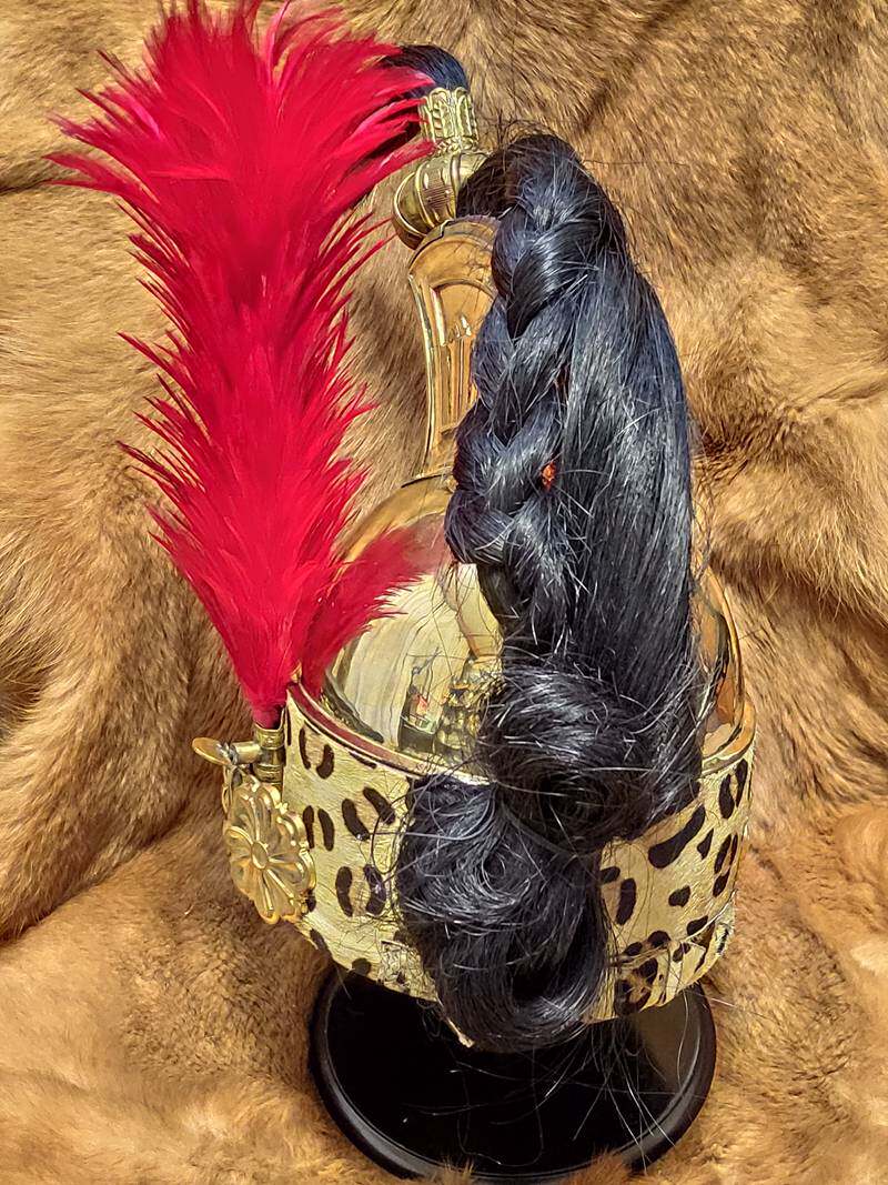 -Order -1806 French Dragon Cavalry safety helmet Milineva style bronze high crown fur armor live-action wear