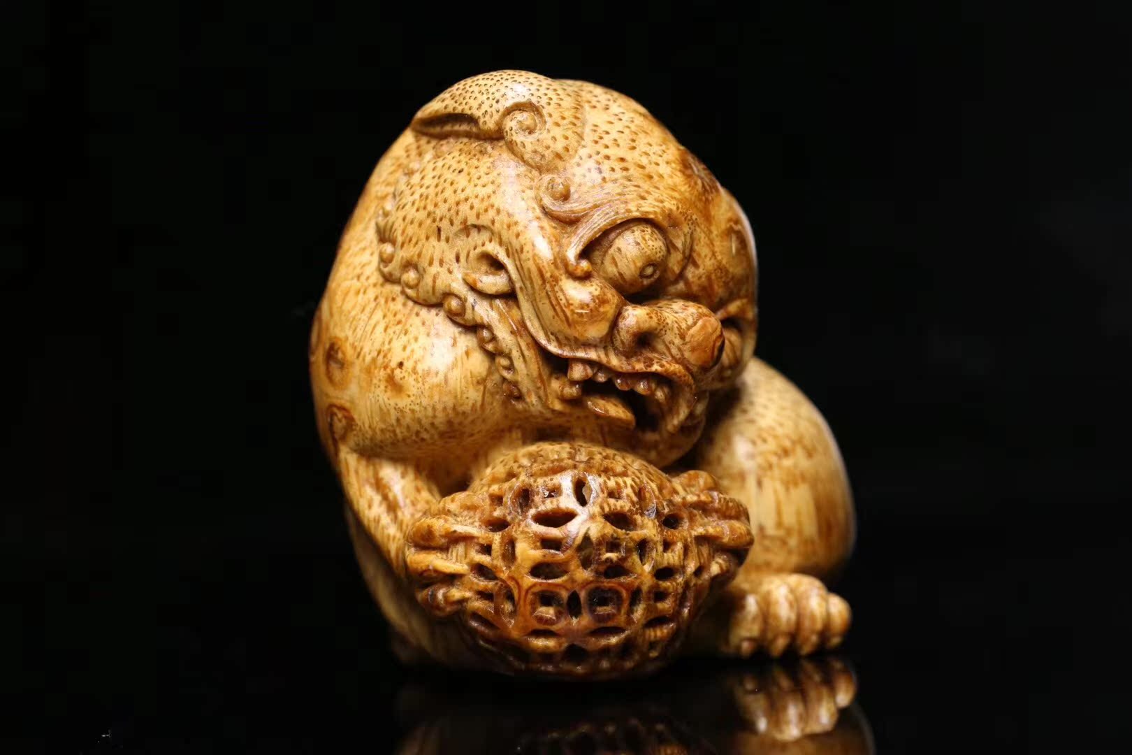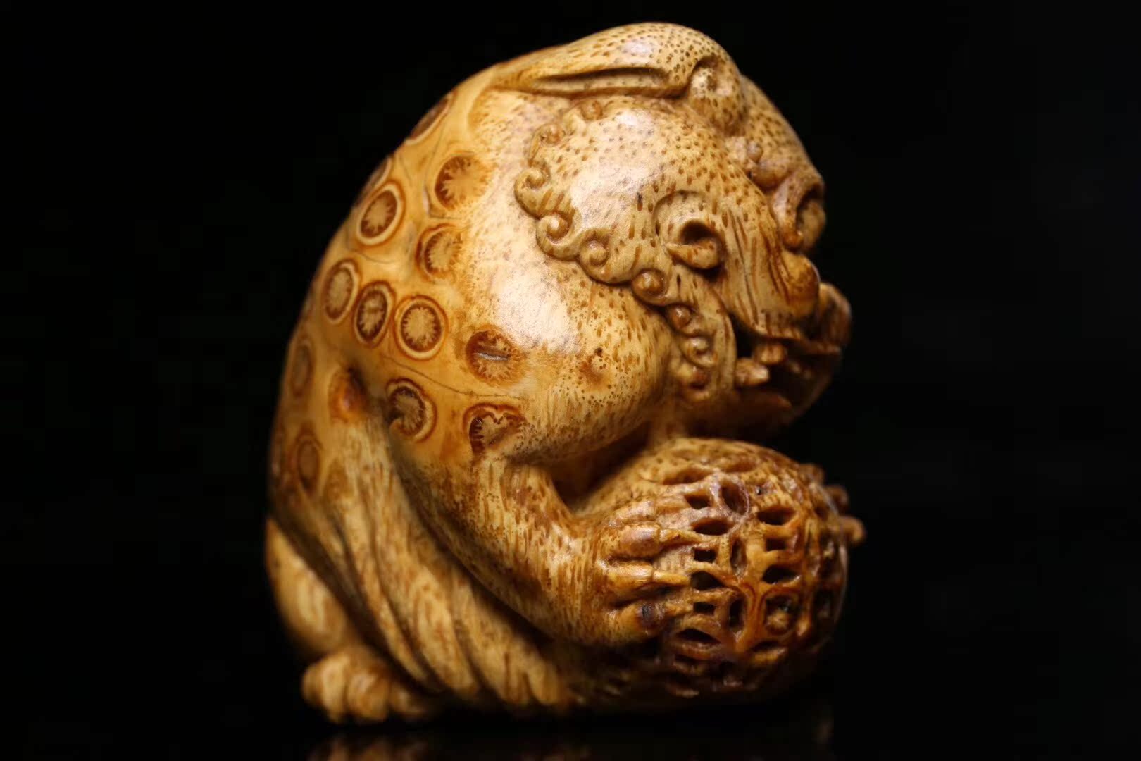 Naughty Bamboo Hall Bamboo Sculpture Liu Xiangrong Three Sheen Lions Handlebar Pieces Boutique Animal Bamboo Root Sculptor Wenfang Pendulum Pieces
