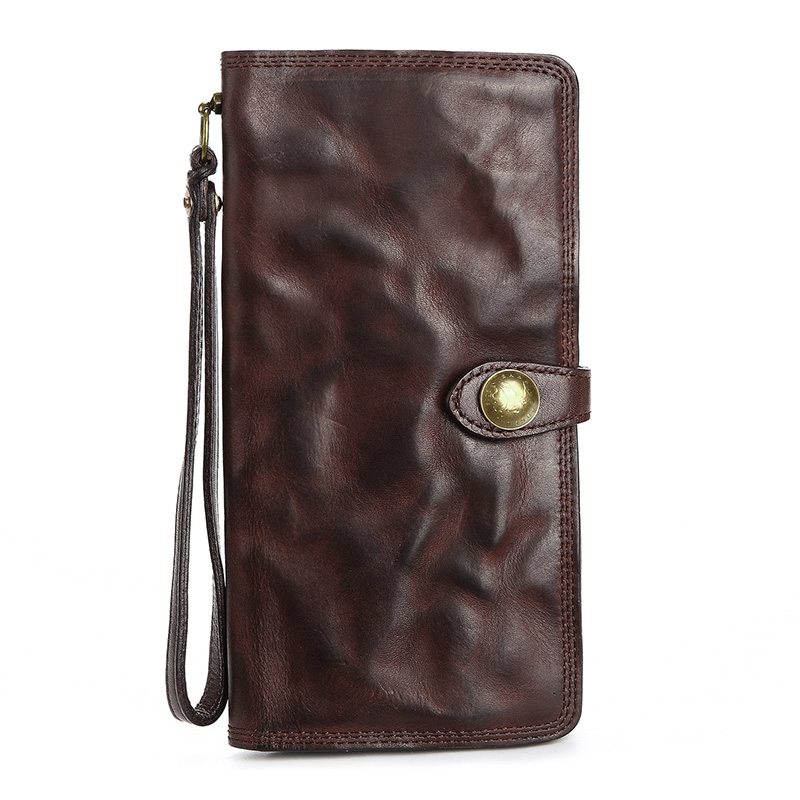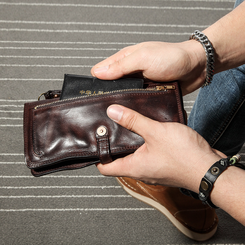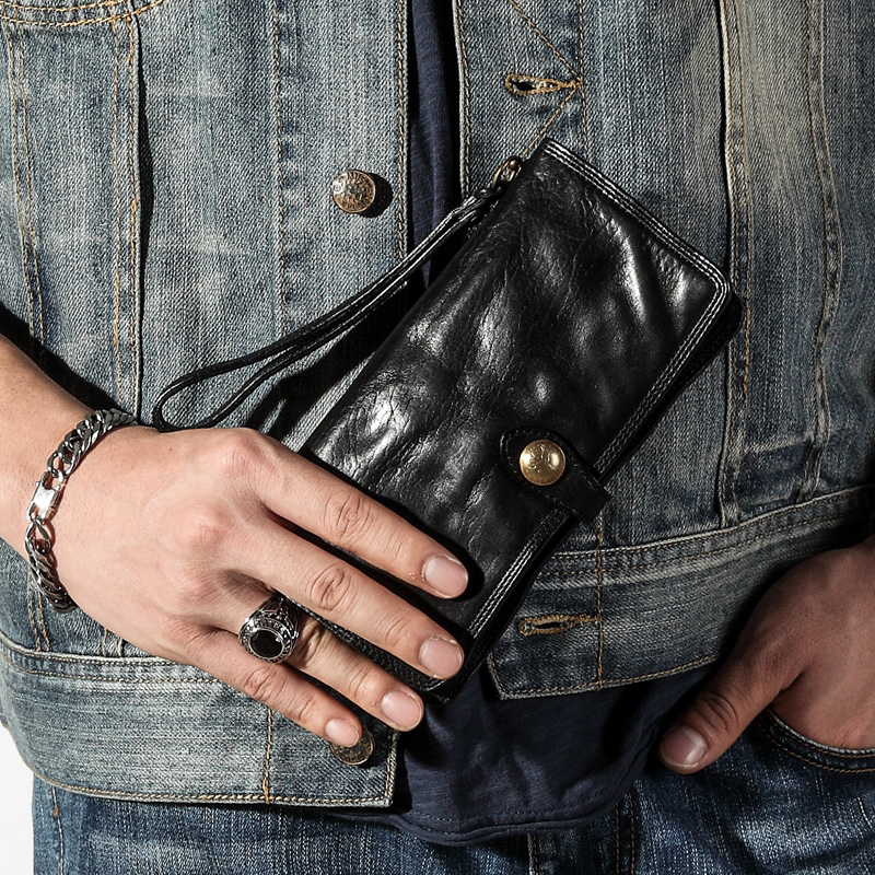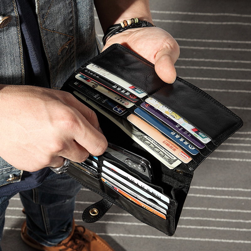 Genuine leather male long version wallet cow leather multi-clamping leather clip 2019 new original retro buckle personality youth money clip