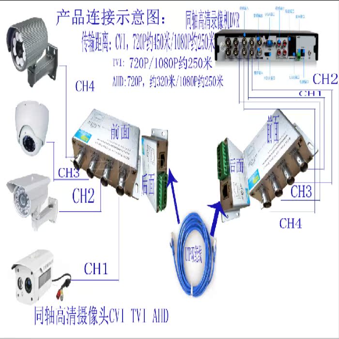 Twin pair four coaxial high definition transmitter anti - interference anti - interference RJ45 crystal head interface video network cable CVI