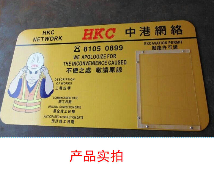 Hong Kong's construction dedicated logo card apologizes for pedestrians pointing to card road signs for temporary construction safety signs