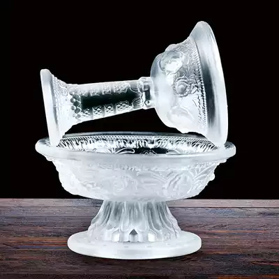 Crystal glass eight Auspicious Hair care cup Offering cup Tibetan Buddhist utensils and utensils White offering cup height 13 5cm