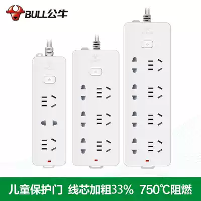Bull office computer socket porous household USB charging multi-function row extension cable 6 8 10 plug