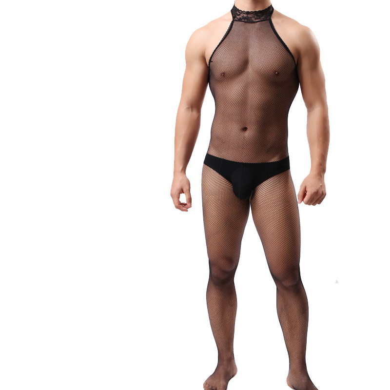 Men's one-piece fine mesh Men's pantyhose men's transparent ultra-thin high elastic socks Men's front and rear hollow crotch jumpsuit