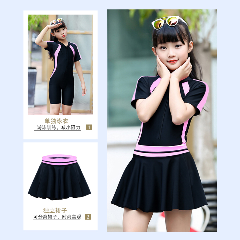 Children's girls' swimsuits one-piece flat skirt style middle and old children 6-15 years old summer swimsuit girls training swimsuits