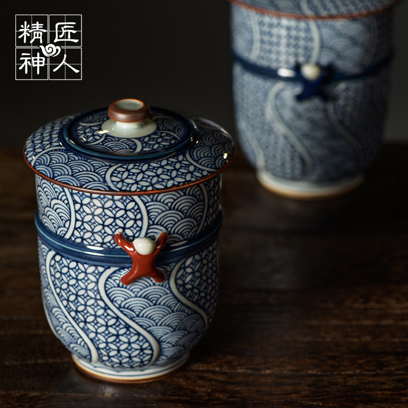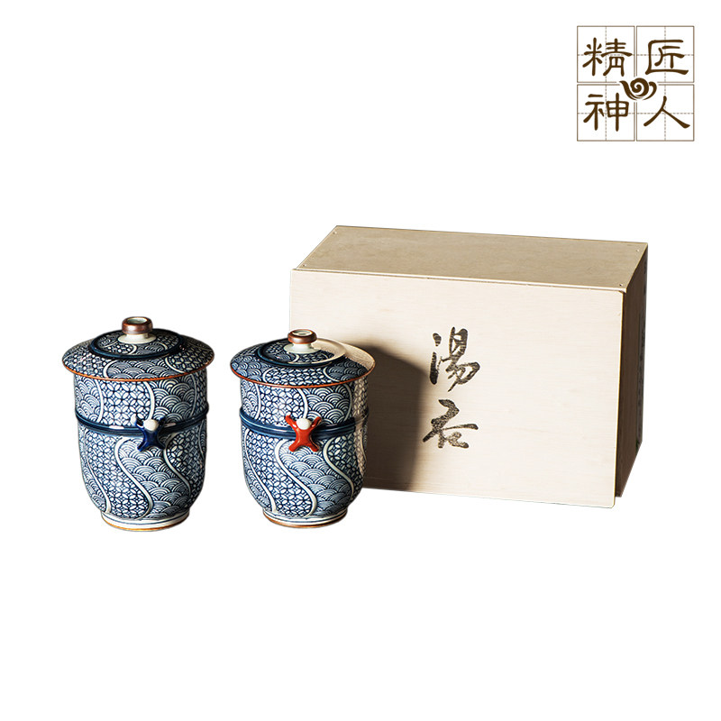 Spot Japan Imports with field Burn Green Flower Striped Accessories Pair Cup With Lid Tea Cup Lovers Cups Wood Boxed