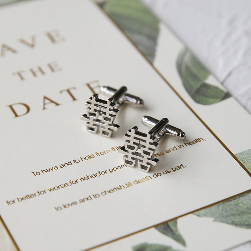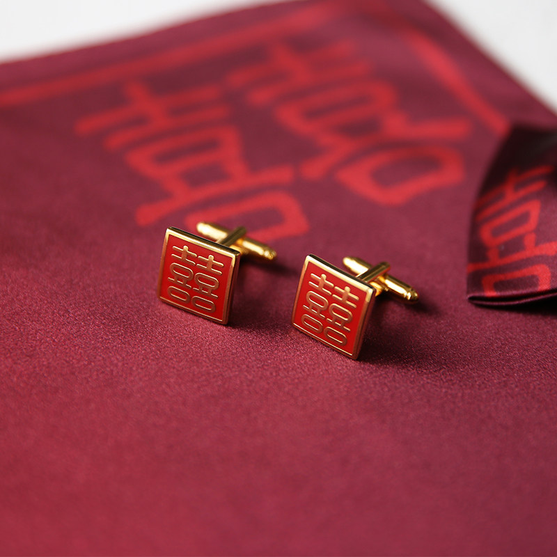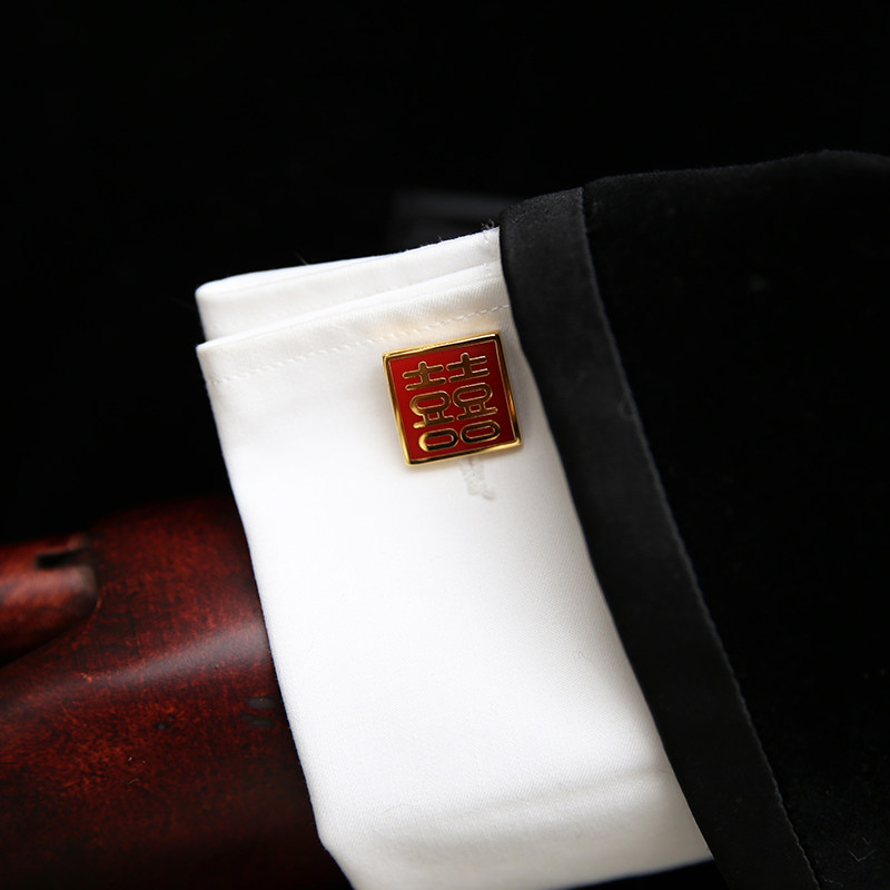 High-end exquisite wedding wedding groom men's suit gift box Double Happiness formal French shirt Cuffs Cuff nails Cufflinks